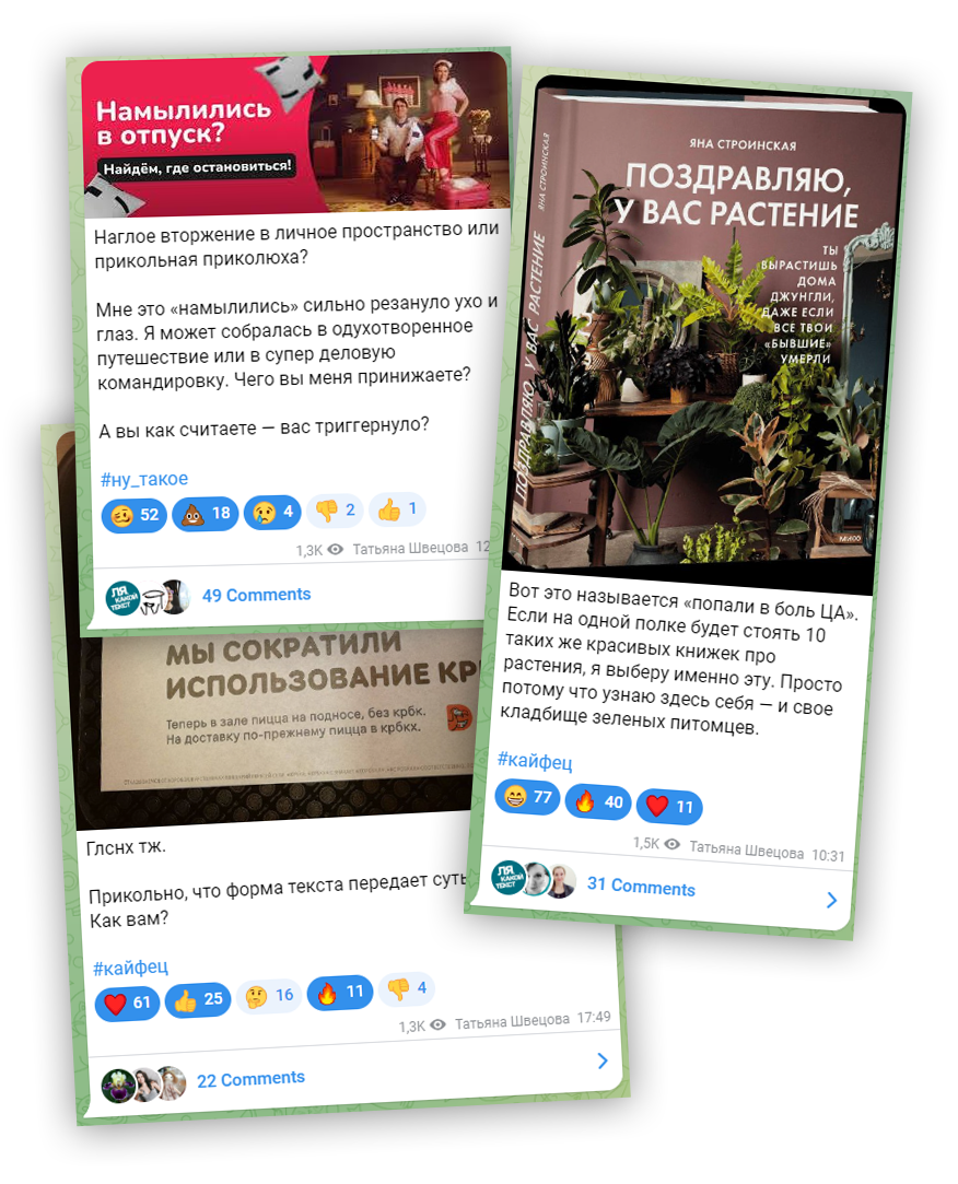 → На канале разбираю коммуникации разных брендов: анализирую рекламу, пуши, рассылки, сайты, статьи и другой контент.